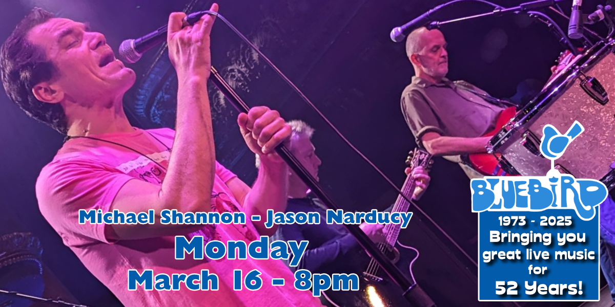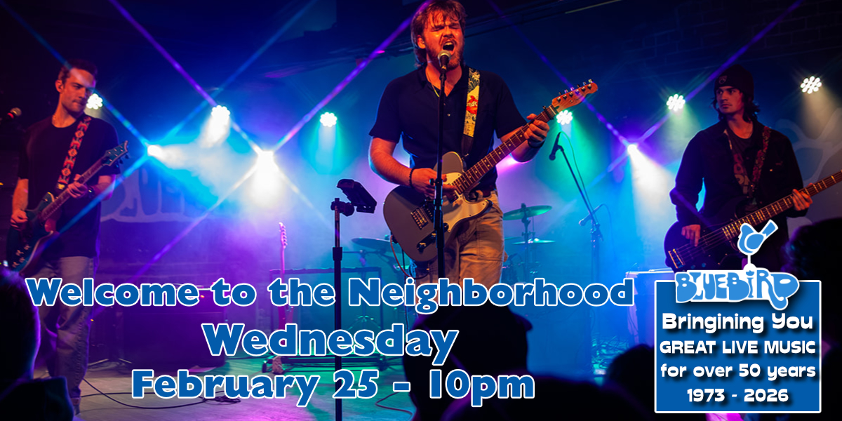 Backyard Function & Yours TrulyFri Apr 59:00PMat Bluebird Nightclub21+, $10.00Funk Share Event Buy Tickets The Brook & The BluffSat Apr 6The Brook & The BluffHotel Fiction8:00PMat Bluebird Nightclub21+, $22.50Alternative Share Event Buy Tickets Jukebox LukeSun Apr 79:00PMat Bluebird Nightclub21+, $10.00Alternative Share Event Buy Tickets Welcome To The NeighborhoodMon Apr 84:00PMat Bluebird Nightclub21+, $5.00Alternative Share Event Buy Tickets 49 WinchesterTue Apr 949 Winchester8:00PMat Bluebird Nightclub21+, $25.00Country Share Event Buy Tickets 6 Foot BlondeWed Apr 1010:00PMat Bluebird Nightclub21+, $10.00Alternative Share Event Buy Tickets Hank RuffFri Apr 129:00PMat Bluebird Nightclub21+, $10.00Country Share Event Buy Tickets Hairbangers BallSat Apr 139:00PMat Bluebird Nightclub21+, $10.00-$15.00Rock Share Event Buy Tickets Rod TuffcurlsThu Apr 189:00PMat Bluebird Nightclub21+, $15.00Alternative Share Event Buy Tickets Rod TuffcurlsFri Apr 199:00PMat Bluebird Nightclub21+, $15.00Alternative Share Event Buy Tickets 12