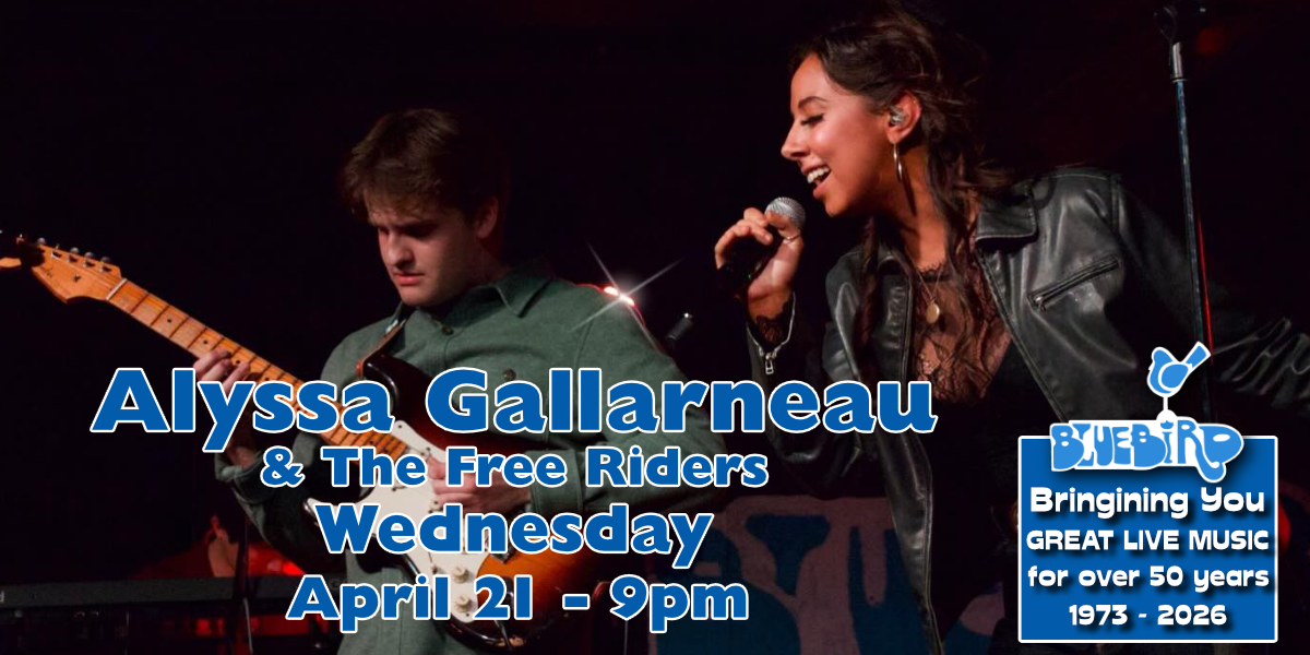 Rich HardestyMon Apr 207:00PMat Bluebird Nightclub21+, $10.00Classic Rock Share Event Buy Tickets OpalMon Apr 2010:00PMat Bluebird Nightclub21+, $10.00Classic Rock Share Event Buy Tickets Rod Tuffcurls & The BenchpressWed Apr 2210:00PMat Bluebird Nightclub21+, $10.00Classic Rock Share Event Buy Tickets Welcome to the NeighborhoodFri Apr 249:00PMat Bluebird Nightclub21+, $10.00Rock Share Event Buy Tickets Jukebox LukeSat Apr 257:00PMat Bluebird Nightclub21+, $10.00Rock Share Event Buy Tickets The Boys and the BritFri May 19:00PMat Bluebird Nightclub21+, $10.00Classic Rock Share Event Buy Tickets 6 Foot BlondeSat May 29:00PMat Bluebird Nightclub21+, $10.00Alternative Share Event Buy Tickets MARISSun May 38:00PMat Bluebird Nightclub21+, $15.00Alternative Share Event Buy Tickets Benjamin TodThu May 7Benjamin Tod8:00PMat Bluebird Nightclub21+, $35.00Americana Share Event Buy Tickets Rod Tuffcurls & The BenchpressFri May 88:00PMat Bluebird Nightclub21+, $15.00Classic Rock Share Event Buy Tickets 12