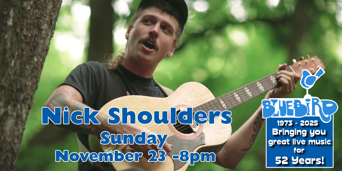 Emo NiteSat Nov 229:00PMat Bluebird Nightclub21+, $15.00Emo Share Event Buy Tickets Nick ShouldersSun Nov 23Nick Shoulders8:00PMat Bluebird Nightclub21+, $18.00Country Share Event Buy Tickets Hank Ruff & Jake DoddsWed Nov 268:00PMat Bluebird Nightclub21+, $10.00Country Share Event Buy Tickets Thunderstruck - AC/DC tributeFri Nov 289:00PMat Bluebird Nightclub21+, $10.00-$15.00Classic Rock Share Event Buy Tickets Hairbangers BallSat Nov 299:00PMat Bluebird Nightclub21+, $10.00-$15.00Classic Rock Share Event Buy Tickets Kashus CulpepperFri Dec 5Kashus Culpepper8:00PMat Bluebird Nightclub21+, $10.00-$15.00Country Share Event Buy Tickets Jukebox LukeSat Dec 69:00PMat Bluebird Nightclub21+, $10.00Rock Share Event Buy Tickets Tuff Taylor - Taylor Swift TributeFri Dec 129:00PMat Bluebird Nightclub21+, $20.00Pop Share Event Buy Tickets Rods and ConesFri Dec 268:00PMat Bluebird Nightclub21+, $10.00Classic Rock Share Event Buy Tickets Southern Accents - Tom Petty TributeWed Dec 318:00PMat Bluebird Nightclub21+, $10.00-$15.00Classic Rock Share Event Buy Tickets 12